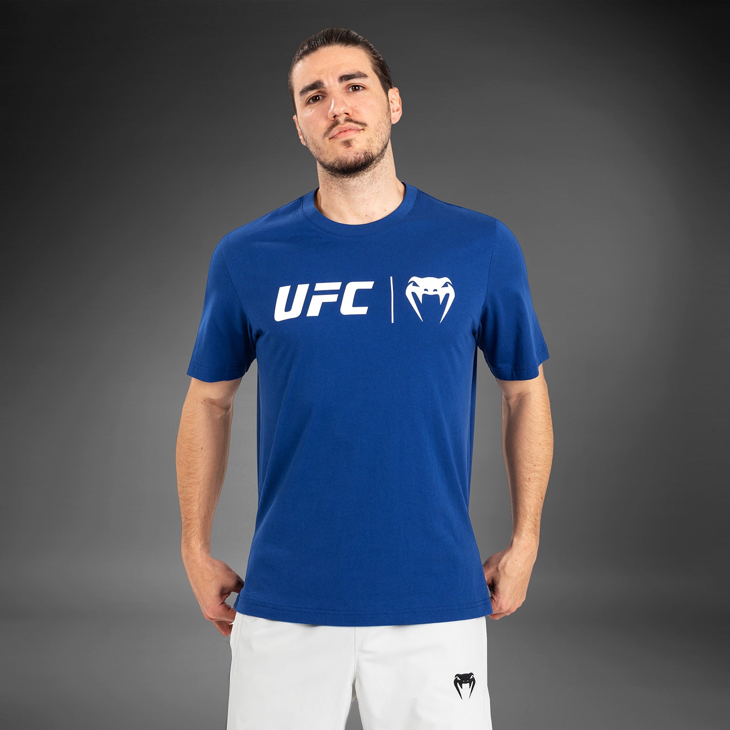 このネイビーブルーのTシャツは、Venumスポーツウェアのジョガーやショーツによく合います。