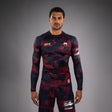 パフォーマンス長袖ラッシュガード メンズ - ネイビーブルー/バーガンディ/シルバー