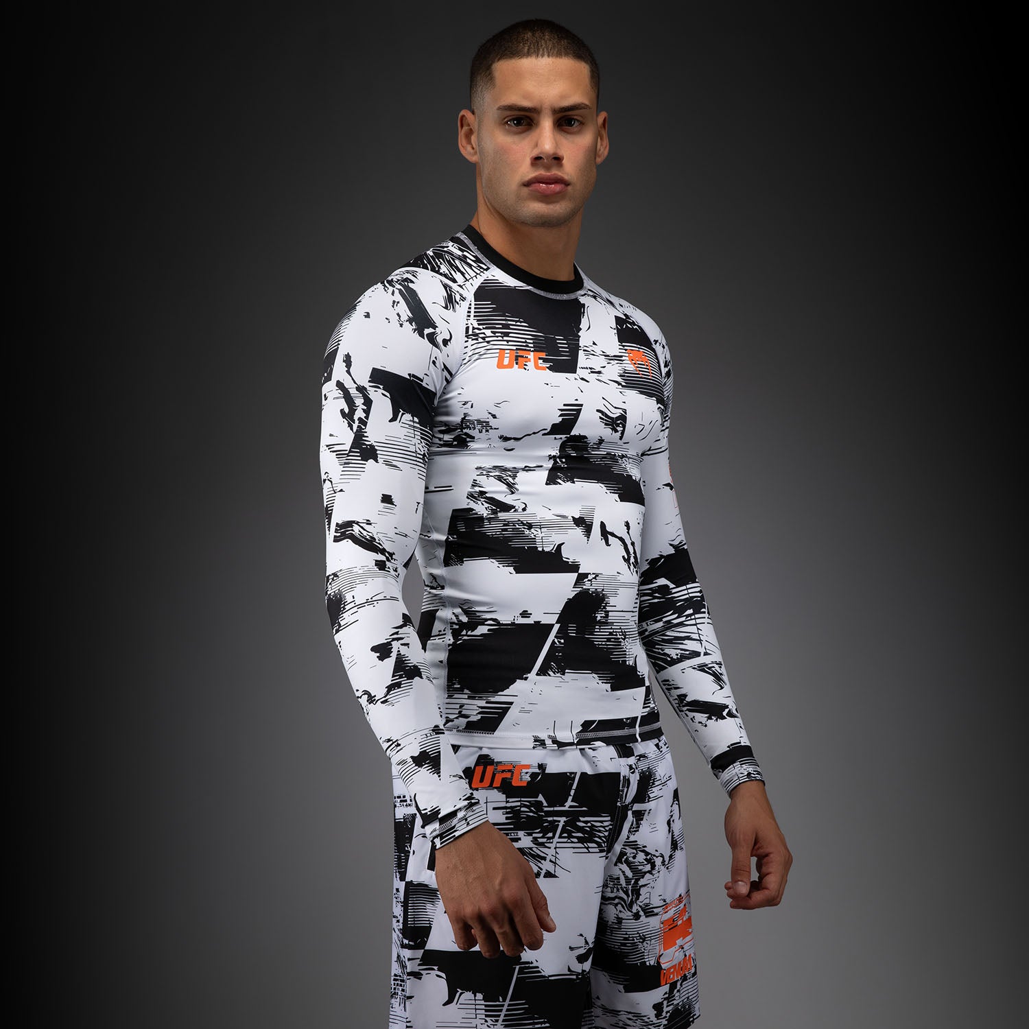 メンズUFC Zenith by Venum Authentic Fight Weekパフォーマンスロングスリーブラッシュガードは、第二の肌のようにフィットし、グラップリング中のケガ防止と自由な動きをサポート。コンプレッション技術で筋肉の回復も促進します。