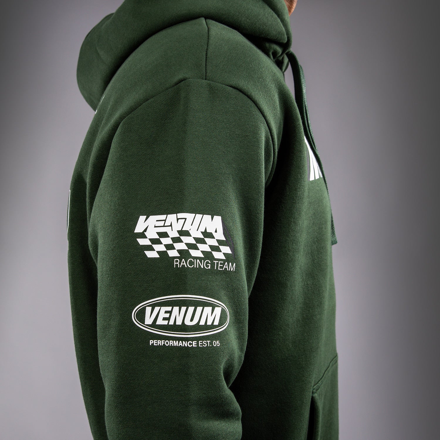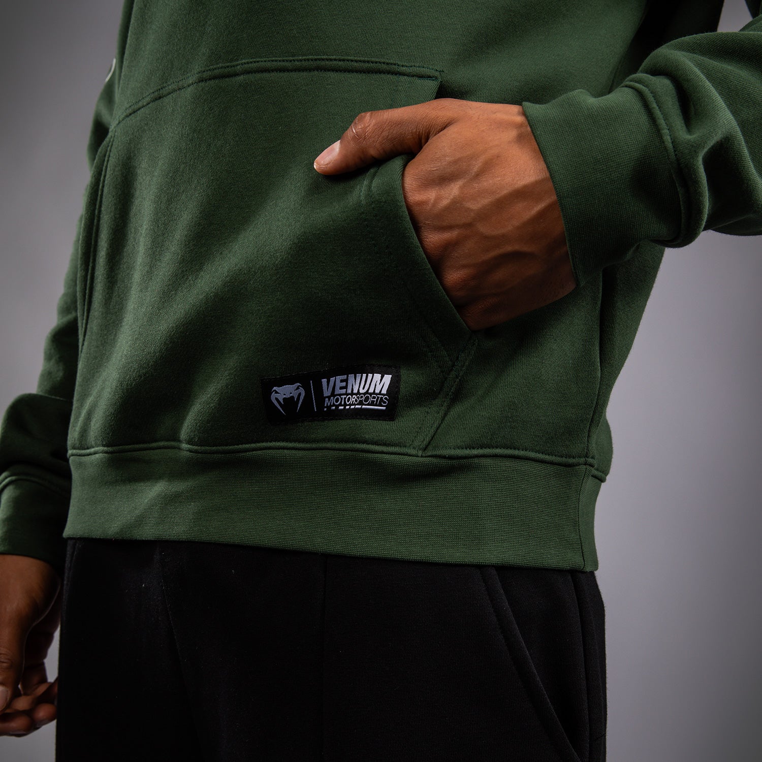ディープフォレストのヴェナムモータースポーツフーディは、カンガルーポケットとドローストリングフードを備えたレギュラーフィットのプルオーバーです。ヴェナムモータースポーツにインスパイアされたオレンジとホワイトのプリントおよび刺繍パッチが施されており、このフーディはトラックに対応しています!