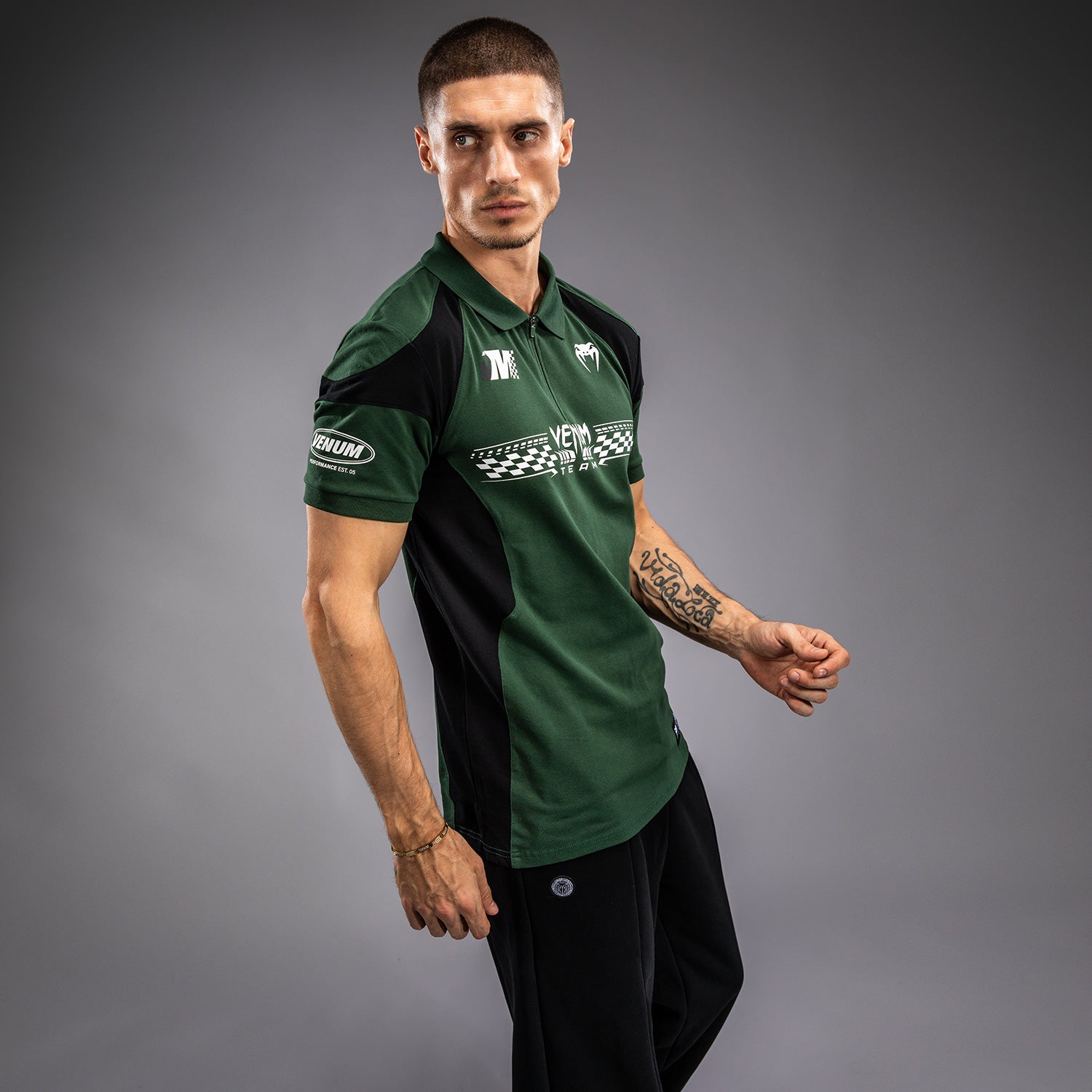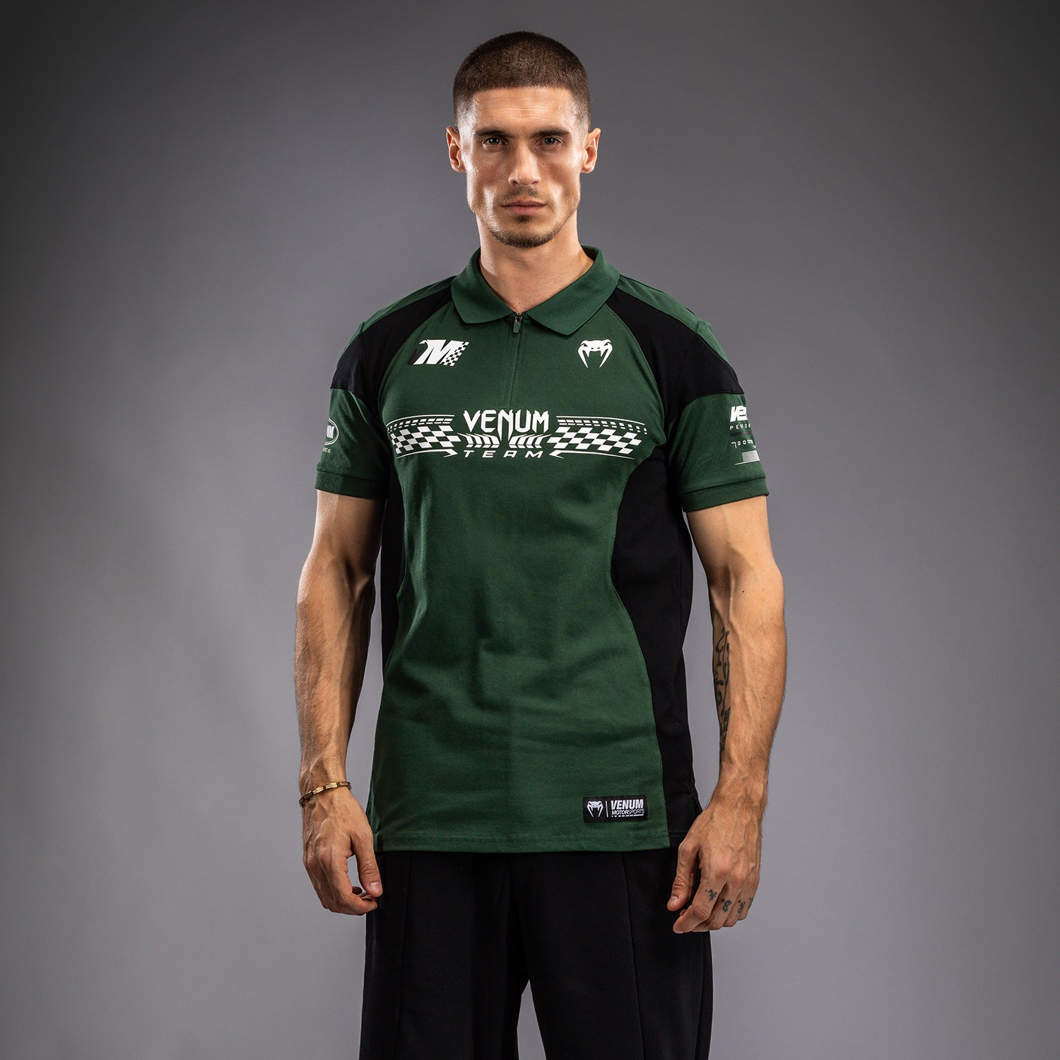 ディープフォレストのヴェヌムモータースポーツコットンポロは、トラックで着用されるパフォーマンスシャツにインスパイアされたもので、ジッパー付きの襟があります。ヴェヌムモータースポーツにインスパイアされた黒と白のプリントおよび刺繍パッチが特徴のこのポロシャツは、トラックでの使用に最適です!
